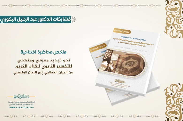 في عالمٍ يزداد تعقيدًا، تبرز الحاجة الماسة إلىٰ إعادة قراءة مصادرنا المعرفية الكبرى بأدوات منهجية جديدة. وفي هذا السياق الأكاديمي الرفيع الذي احتضنه المعهد العالي للحضارة الإسلامية بجامعة الزيتونة، وناديه الفكري “نادي ابن عاشور” بإشراف الدكتور إلياس قويسم، وهذا المقال ملخص مركّز ومرافق لمحاضرة افتتاحية هامة ألقيت تحت عنوان: “نحو تجديد معرفي ومنهجي في التفسير التربوي للقران الكريم: من البيان الخطابي الى البيان المنهجي”. ألقاها الدكتور عبد الجليل البكوري رئيس مركز رُبىٰ للدراسات والأبحاث والتدريب التربوي.